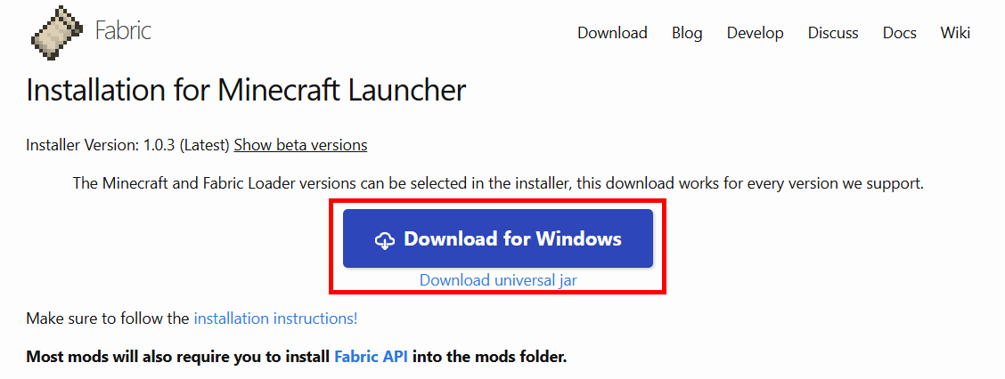 많은 패브릭 모드들은 Fabric API에 포함된 기능을 기반으로 만들어졌습니다. 그래서 Fabric Loader만으로는 실행되지 않고,