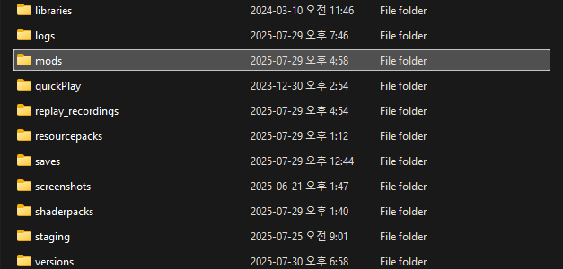 mods 폴더가 없다면 직접 파일을 생성해주세요.