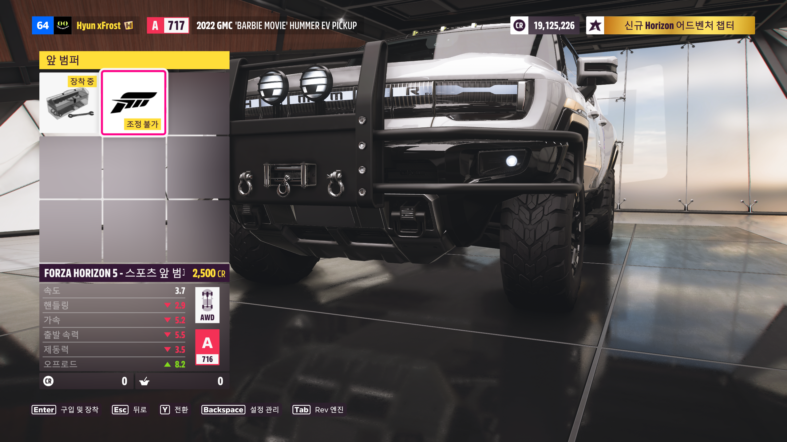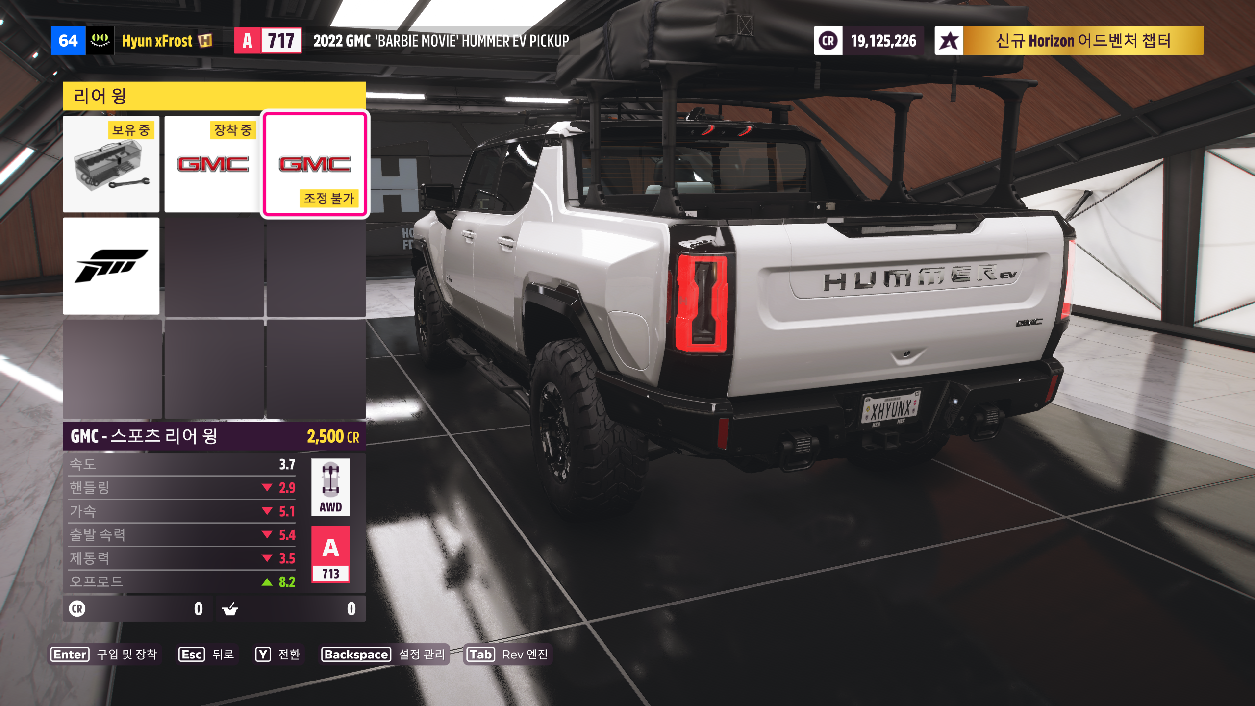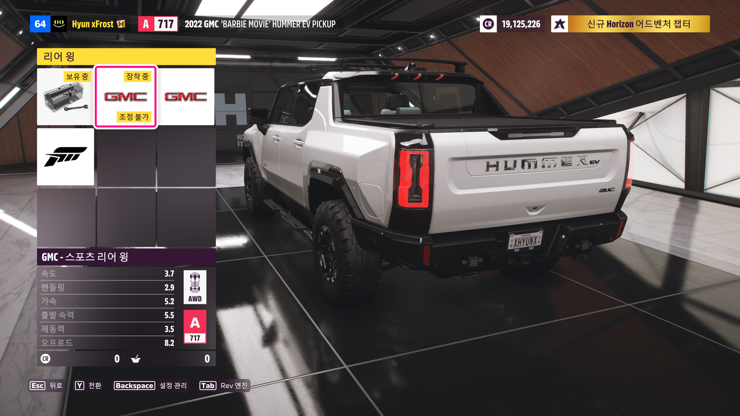 풀네임인 2022 GMC 'BARBIE MOVIE' HUMMER EV PICKUP은 우리가 아는 허머 브랜드 폐기 후 GMC에서 허머를 전기차로 부활시킨 차량이고 포르자 호라이즌에서는 '호라이즌 살펴보기' ( Explore The Horizon ) 시리즈 봄 시즌 때 20점 넘게 받았을 시 시즌보상으로 주는 차량입니다. 저는 경매로 20,000,000 CR로 샀었는데 지금 보니까 자동차 매장에서도 파네요 ㅠㅠ